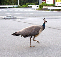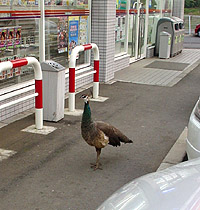コンビニ前で孔雀に遭遇