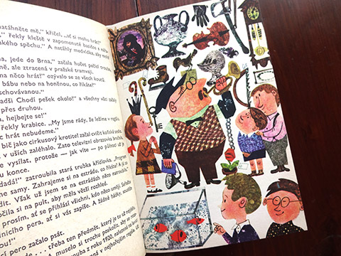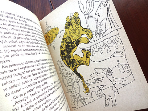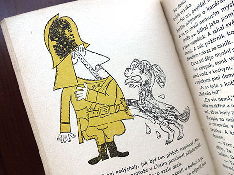 この本のおすすめポイントは、なんといってもわら半紙のような紙に、馴染んだイラスト。経年変化で味わいを増しています。カラー頁のベースは白で、これはカラー印刷をする前に一度白インクで全面をベタ印刷する白引きという手法です。