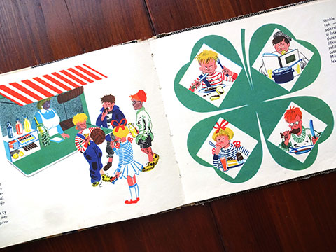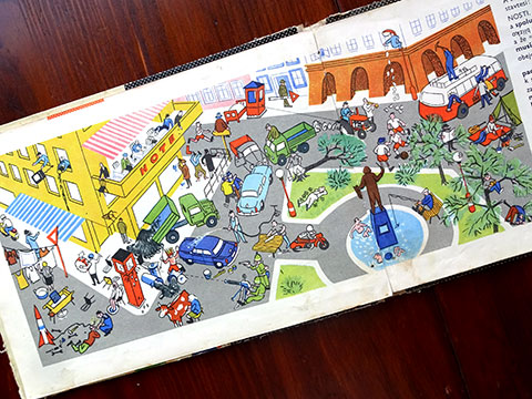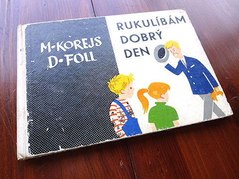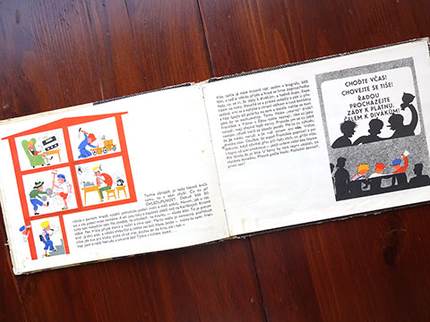 チェコで60年代に出版された「あいさつ」をテーマにした学習絵本。印刷はおそらくグラビアで、経年変化も手伝って版画のような味わいが生まれています。紙質といい印刷といい「古い絵本」の魅力漂う作品。全体的に経年変化劣化が見られます。古い洋古書にご理解のある方に。